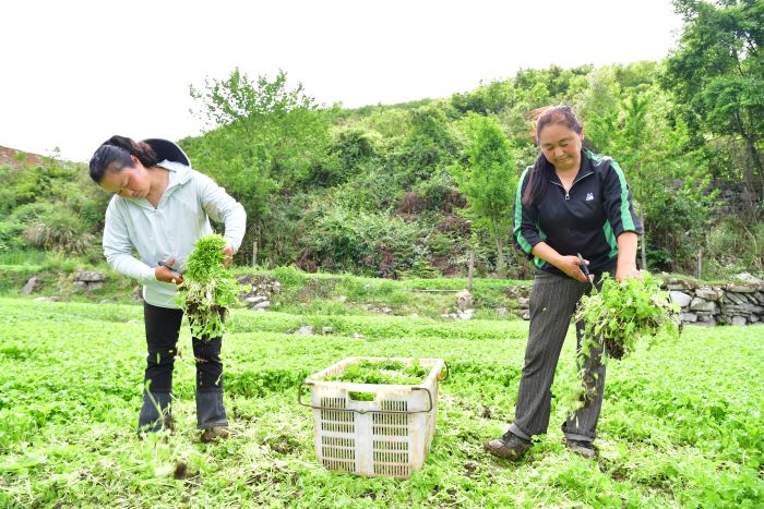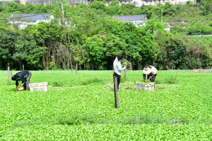 日前,观山湖区朱昌镇郝官村的桤树湾和火烧房一片繁忙景象:田间地头,村民们翻土、弯腰播撒种子,种下应季速生蔬菜;另一边,绿油油的蔬菜铺满田垄,村民有序分工,将这些长势良好、绿意葱茏的速生蔬菜采摘下来,立即装车送往辖区的火锅店。
